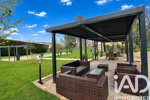 À l’extérieur, une large terrasse recouverte d'une pergola qui s’ouvre sur un magnifique jardin arboré, au calme et sans vis-à-vis.