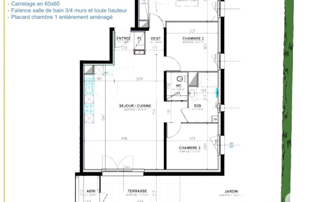 • Nbre. de chambres : 3
