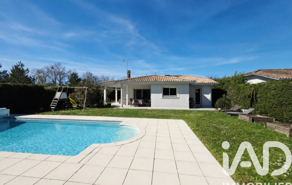 iad France - Pierre-Olivier MEILLIER vous propose: Pessac Magonty - Au calme dans un environnement vert, jolie plain-pied indépendant de 145 m² composé d'une belle entrée, un ensemble salon/salle à manger de 45 m² et cuisine US de 13 m² orienté sud-ouest, 4 grands chambres dont une suite parentale (salle d'eau, dressing), salle de bains, 2 WC, un cellier/buanderie, un garage, une double terrasse couverte, piscine, abri bois, emplacement 2/3 voitures... Le tout sur une jolie parcelle de 857 m². Les commodités (école primaire, bus, pharmacie, épicerie, cabinet médical...) sont proches à pied. Notre coup de coeur !