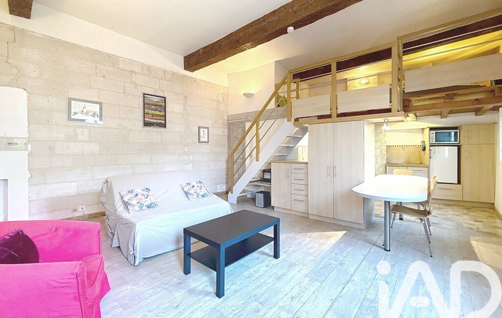 La pièce principale, lumineuse et bien agencée, peut être divisée en différents espaces pour créer une atmosphère chaleureuse et fonctionnelle. L'espace nuit se situe sur la mezzanine permettant l'optimisation totale des 37 m2 en loi carrez.
