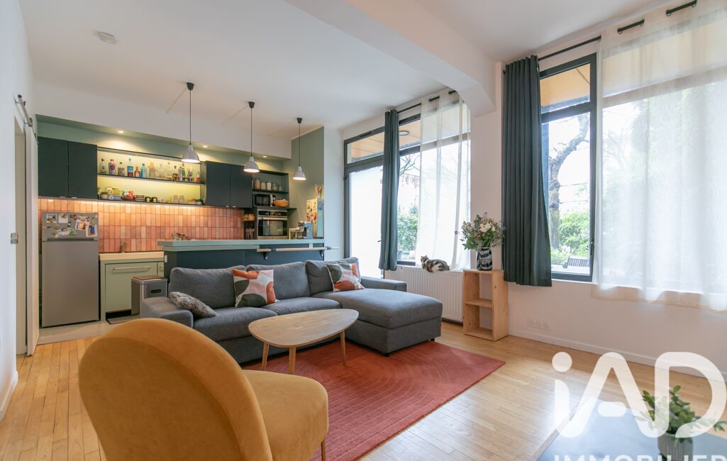 iad France - Anne Lorenzini vous propose: Mairie de Montreuil/Paul Signac. Très beau LOFT 3 pièces, en parfait état avec terrasse privative. Ce lieu unique se trouve à 12 min à pied du métro Mairie. Il bénéficie d'un accès par sa terrasse privative. On entre dans une grande pièce de vie avec une très belle hauteur sous plafond. Le loft comprend 2 chambres. L'une d'elles est actuellement utilisée en salle de MONTAGE SON (excellente insonorisation). Le loft bénéficie d'un coin dressing et buanderie. Très jolie salle de douche.