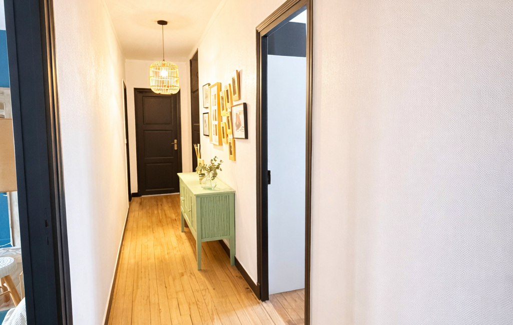 L’appartement séduit par son charme authentique : parquet bois, belle hauteur sous plafond, luminosité traversante et ambiance chaleureuse.