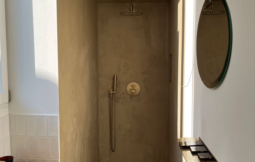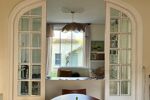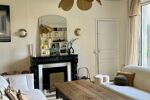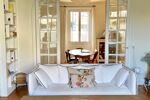 - Un salon lumineux avec moulures d’époque et cheminée avec un accès direct sur le jardin.