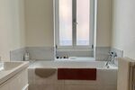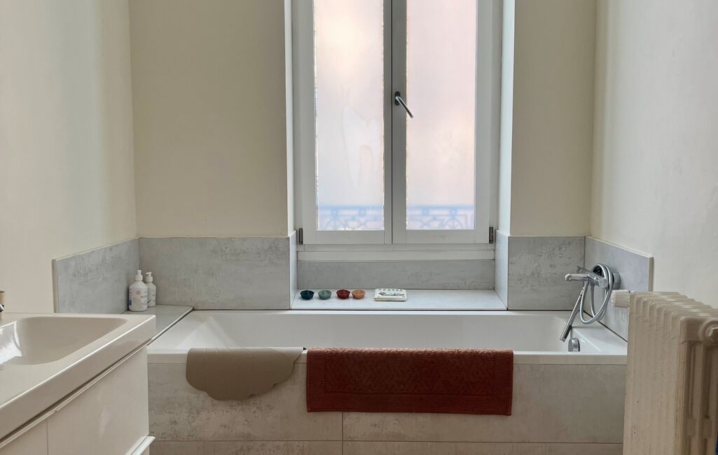 - Une grande salle de bain familiale avec double vasque et baignoire.