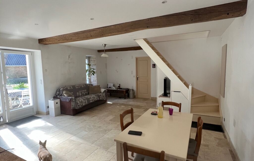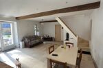 Vous trouverez au RDC un lieu de vie d'environ 60m² avec un salon de 28m² desservant une cuisine séparée semi - équipée de 9,6m², d'une chambre de 13m² avec dressing, d'une salle de bain avec douche et baignoire ainsi qu'un WC, à l'étage un petit dégagement desservant 2 chambres de 9,15m² (13m² de surface au sol) et d'un deuxième WC.
