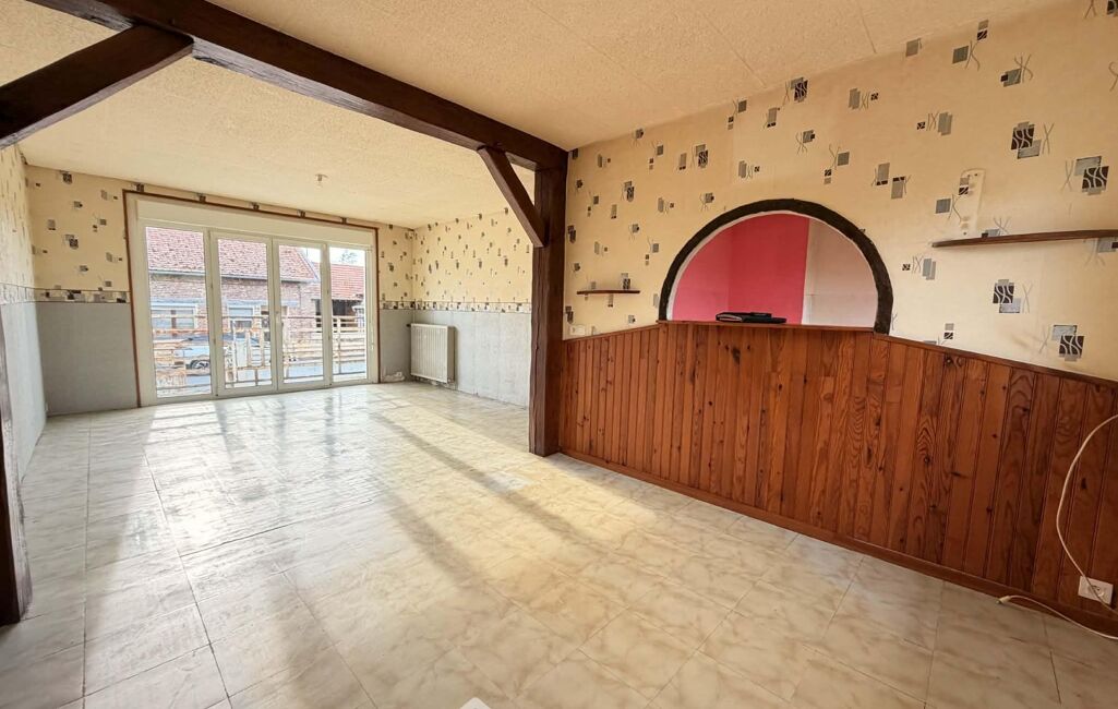 Une vaste entrée vous accueille, suivie d'un séjour spacieux et lumineux, semi-ouvert sur une cuisine à aménager selon vos envies.