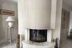 Un double séjour/salon équipé d'une cheminée à insert