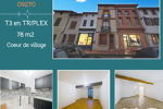 Ce triplex unique, d'une surface de 78,42 m² habitable et 101 m2 de surface au sol, offre un cadre de vie chaleureux et atypique au sein du charmant village de Mazères. Situé au 2ème étage d'un immeuble de 1950 , cet appartement jouit d'une disposition en palier qui lui confère un cachet particulier et une ambiance cosy.