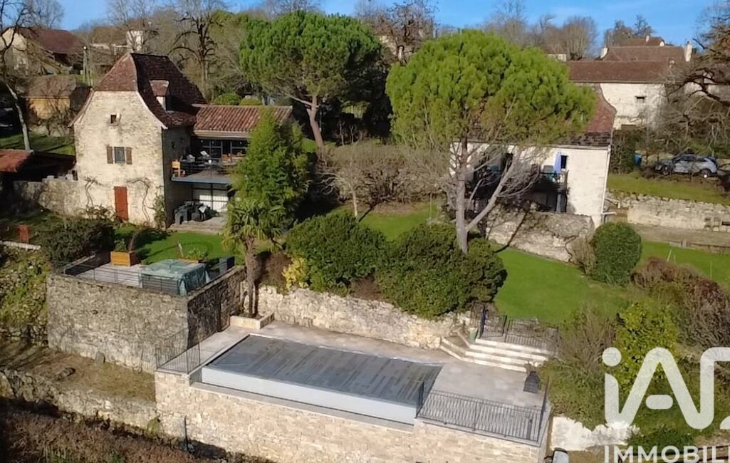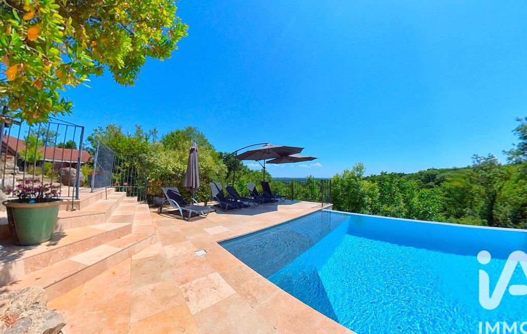 iad France - Laurent Medina vous propose: Superbe ensemble de caractère composé de deux maisons Quercynoises, et piscine à débordement avec vue extraordinaire sur la vallée, aux portes de Figeac...