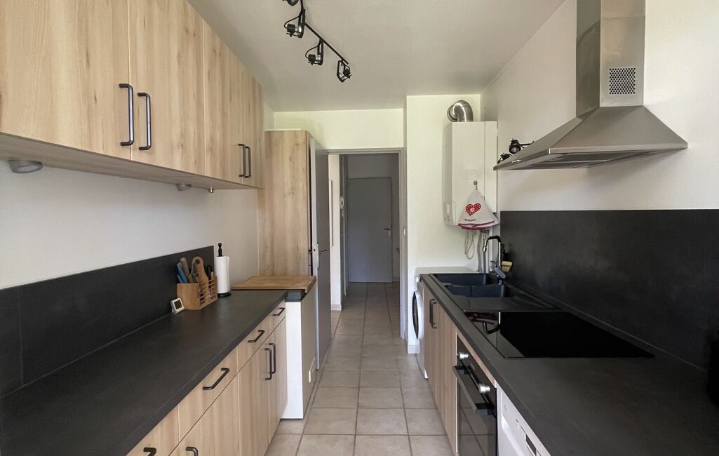 L'espace de vie s'articule autour d'un séjour lumineux de 23 m², prolongé par une agréable terrasse de 12,60 m² exposée plein sud, idéale pour profiter des beaux jours en toute tranquillité. Une belle cuisine indépendante de 9,60 m² vient compléter harmonieusement cet espace.