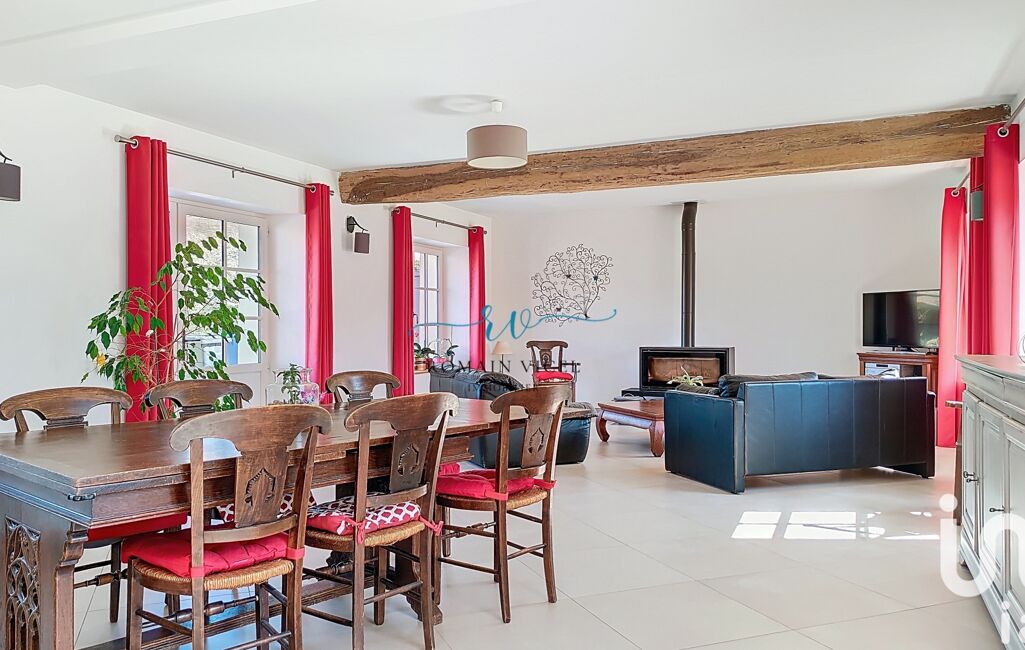 D'une surface totale de 293 m², cette longère offre des espaces de vie généreux et lumineux. Avec 5 chambres spacieuses dont une suite parentale au rez-de-chaussée d'environ 40m2 avec dressing et salle d'eau privative, 3 chambres à l'étage dont une d'environ 60m2 offrant multiples possibilités et la dernière chambre située dans le studio d'environ 30m2, chacune avec sa propre ambiance, 1 salle de bains, 1 salle d'eau, 1 buanderie, 1 cuisine équipée et un double séjour traversant confortable, vous disposerez de tout l'espace nécessaire pour vous épanouir en famille ou entre amis.