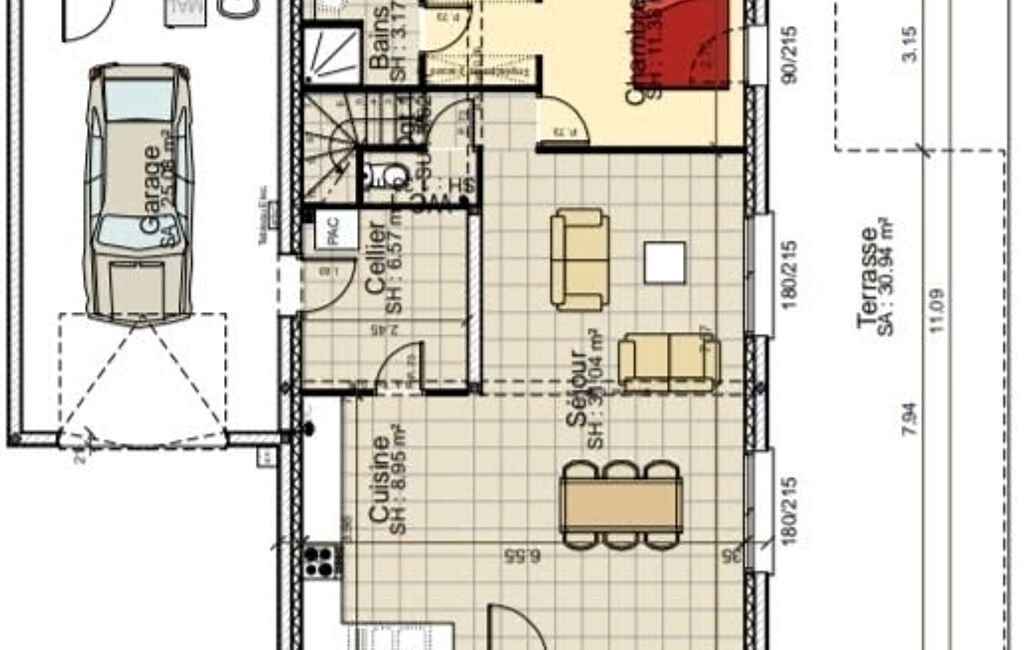 Enfin, le garage de 25 m2 intégré permettra de stationner votre véhicule en toute sécurité ou pourquoi pas d'agrandir la maison d'une deuxiéme suite parentale ou studio!