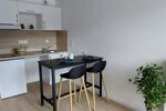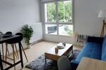 Pièce de vie agréable et très lumineuse, cuisine us aménagée et équipée, salle d’eau moderne et WC.
