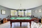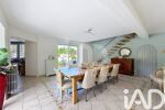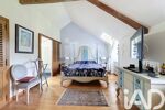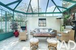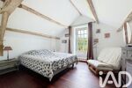 Dès l’entrée, le ton est donné : authenticité, élégance et luminosité. Le salon de réception, sublimé par sa cheminée monumentale, invite à des instants chaleureux. La verrière, baignée de lumière, prolonge l’espace vers le parc arboré, offrant une continuité harmonieuse entre intérieur et extérieur.