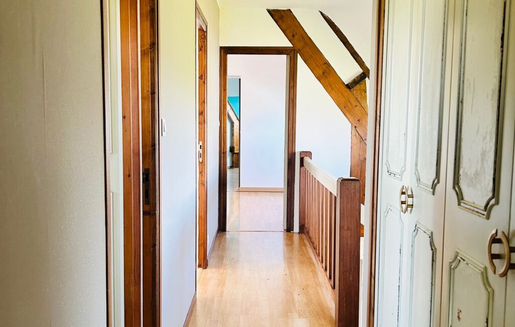 Sur de grands volumes, elle offre une entrée, grand séjour, salon, chambre parentale, cuisine aménagée, salle d'eau, cabinet de toilette. Couloir à l'étage desservant 4 chambres, salle d'eau/wc.