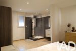 - 1 suite parentale comprenant un espace nuit, un dressing et une salle d’eau (douche, meuble avec simple vasque, sèche serviette)
