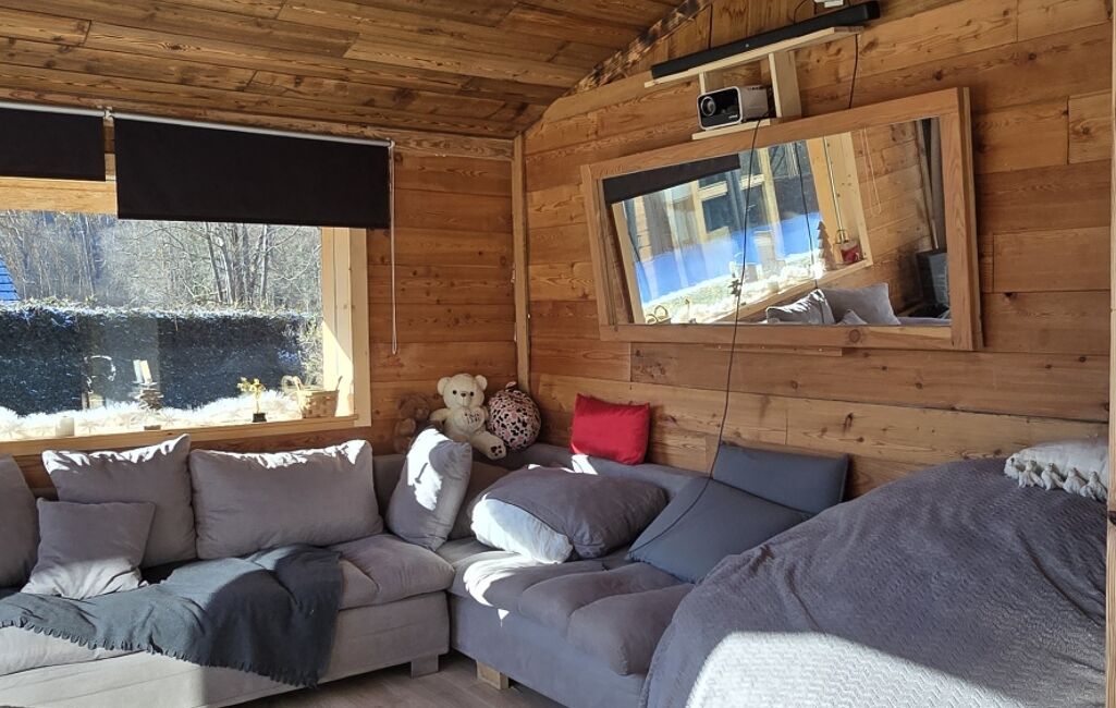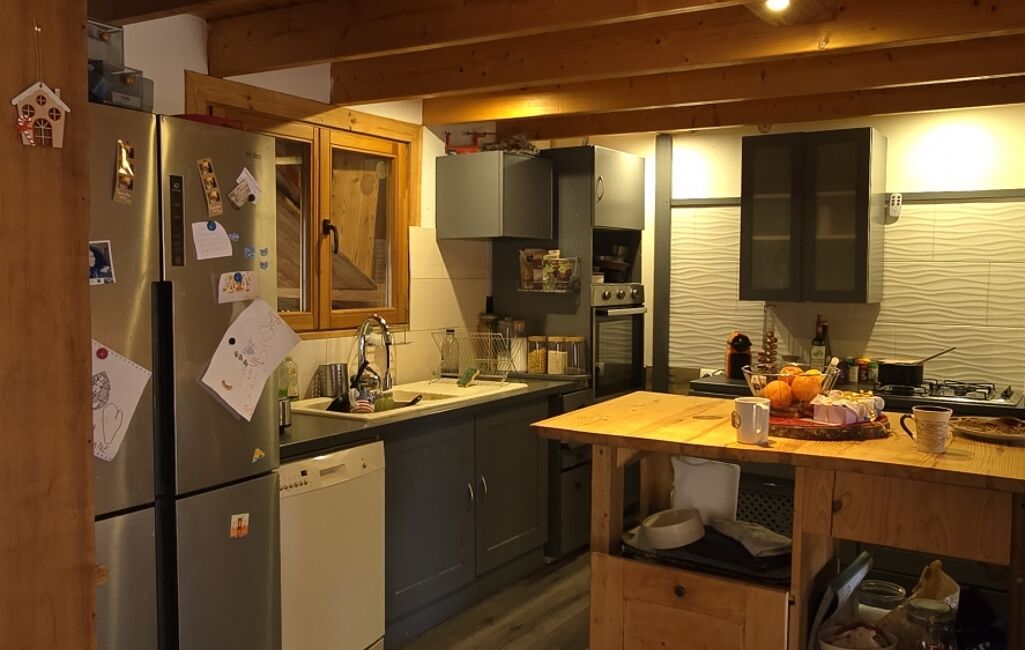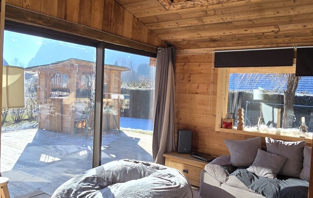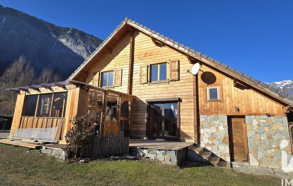 iad France - Guillaume Bonetti vous propose: Chalet de 123m² des années 2000 en structure madriers bois. Exposée Sud-Est sur une parcelle de 1000m² sans vis à vis direct.