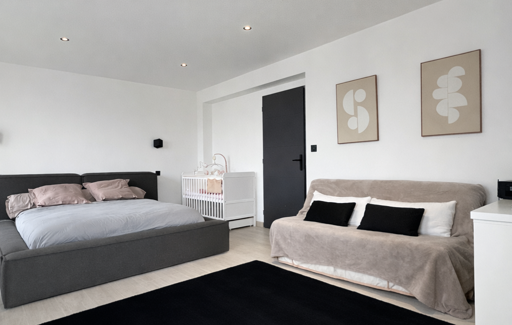 Au coin nuit 3 grandes chambres une de 21m2 avec balcon, une de 17,50m2, une de 11,70m2 et une salle d'eau de 4m2 avec un WC indépendant.