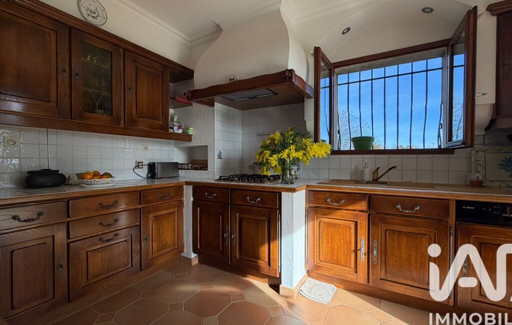 La cuisine indépendante, fonctionnelle et conviviale, communique directement avec la terrasse, idéale pour les repas en famille ou entre amis.