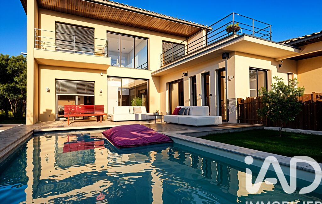 iad France - Sandrine Chalvet vous propose: Idéalement située à Mauguio, à proximité immédiate des commerces de , de l’aéroport, de la gare TGV Sud de France et de l’autoroute A9, cette villa contemporaine vous offre un cadre de vie rare, entre dynamisme urbain et douceur méditerranéenne.