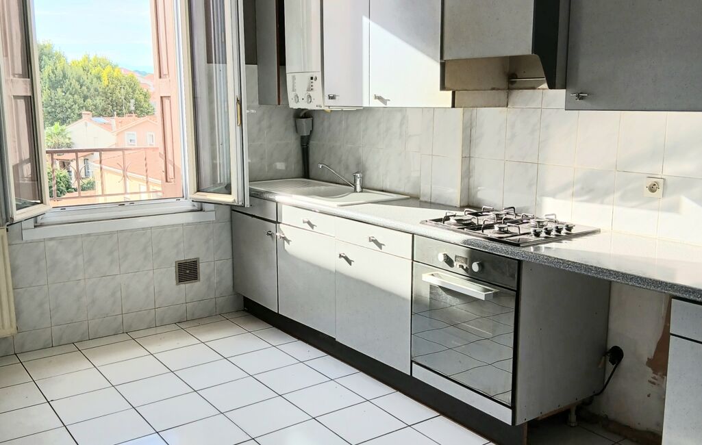 Une cuisine séparée et équipée, fonctionnelle et lumineuse.