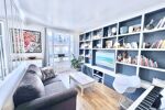 Ayant fait l’objet d’une rénovation récente très réussie, ce bien multiplie les atouts grâce à la luminosité offerte par ses nombreuses fenêtres, la verrière de type loft/atelier qui confère beaucoup de cachet à son espace de séjour, sa situation traversante en étage élevé, sa quadruple orientation, ses vues dégagées, son beau parquet en chêne massif, sa hauteur sous plafond de 2,70 m, ses nombreux rangements sur mesure et ses chambres au calme absolu sur cour.