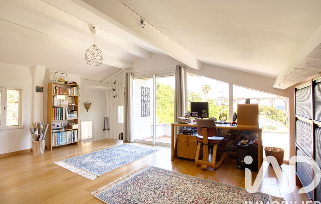 Au 3eme niveau, une chambre, un grand espace bureau, un dressing, offrant des espaces de vie privés et confortables. Cet espace lumineux et généreux donne sur un balcon avec vue mer.