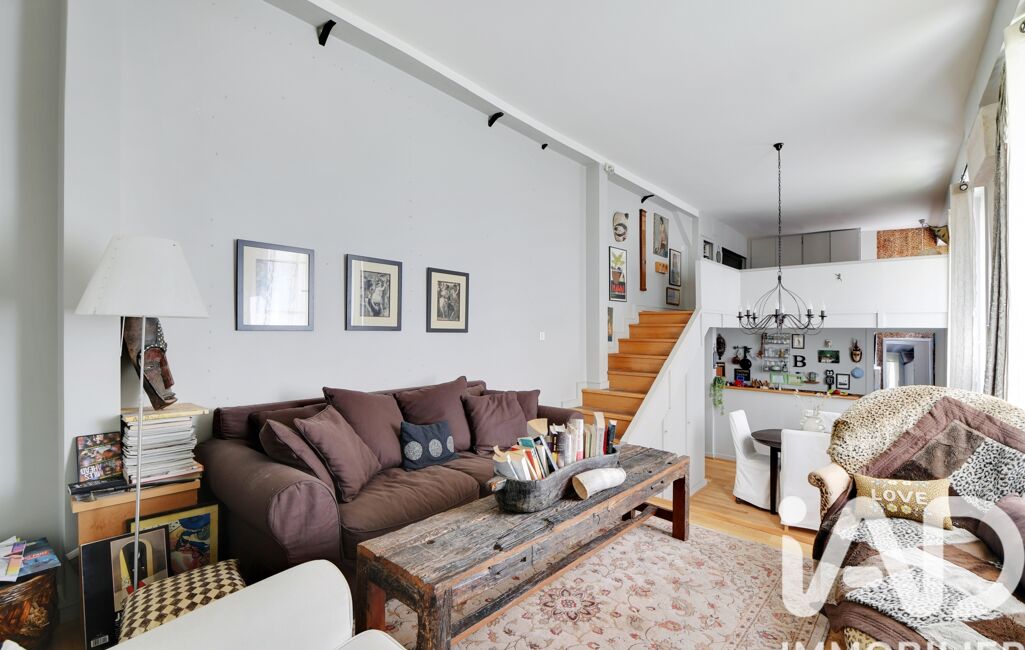 L’espace de vie principal, un double séjour de 27 m2 avec cuisine ouverte, offre un cadre chaleureux et raffiné.