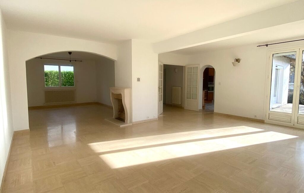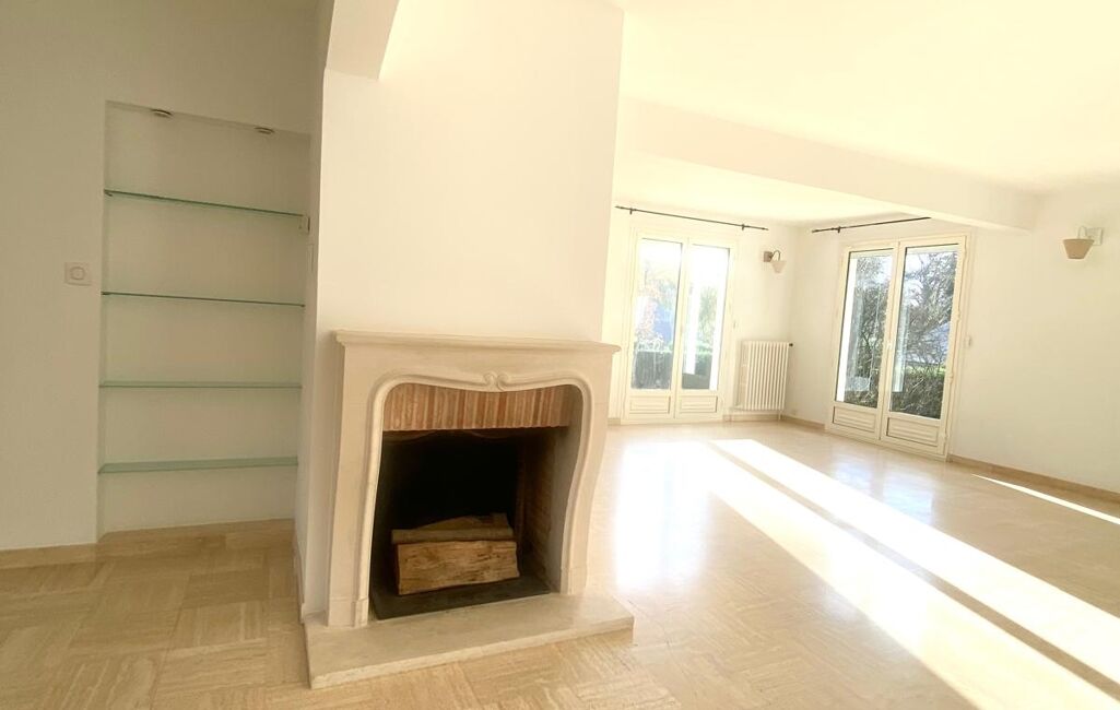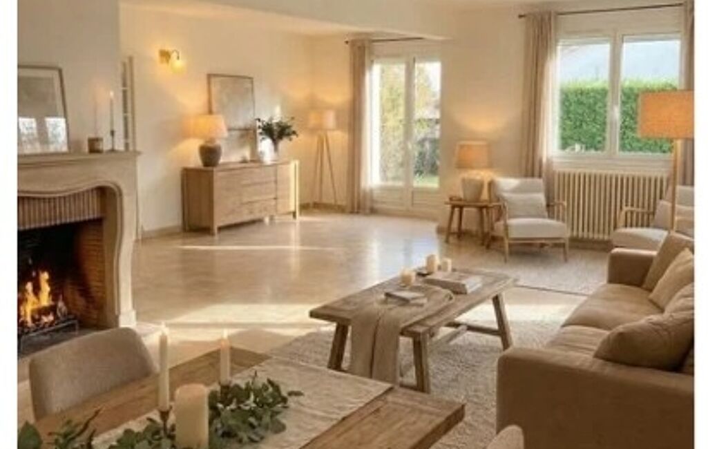 Réceptions et détente : Un vaste séjour en L avec cheminée, baigné de lumière et s'ouvrant largement sur un magnifique jardin arboré. Le lieu parfait pour vos futurs barbecues d'été.