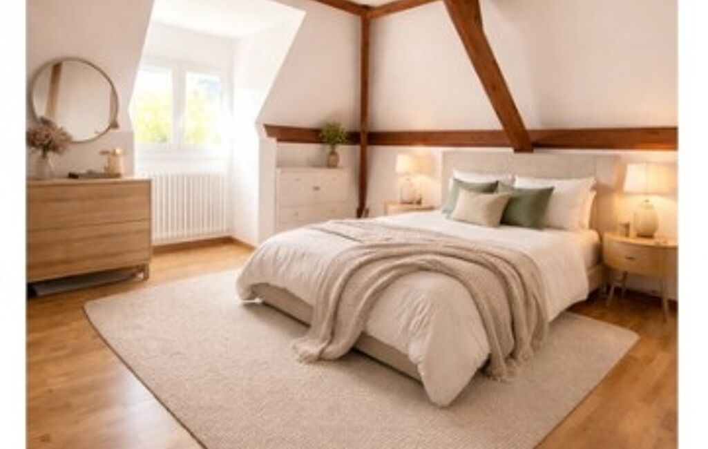 Espace nuit à l'étage : Deux belles chambres et une pièce 'bonus' modulable selon vos envies (3ème chambre, salle de jeux ou bibliothèque).