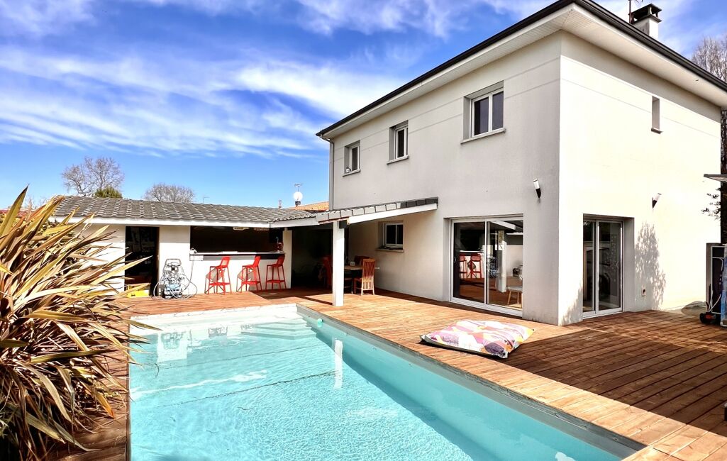 Véritable invitation à la détente et aux moments conviviaux en famille ou entre amis, vous profiterez d'une terrasse bois et de beaux massifs (arrosage automatique intégré) ainsi que d'une piscine au sel 7,50 m x 3,50 m toute automatisée (exposition Sud /Sud-Ouest).