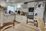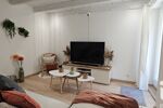 A l'étage, une pièce de vie de 27 m² comprenant un séjour chaleureux avec poêle à granules et une cuisine équipée, 2 belles chambres et une salle de bain avec douche et baignoire.