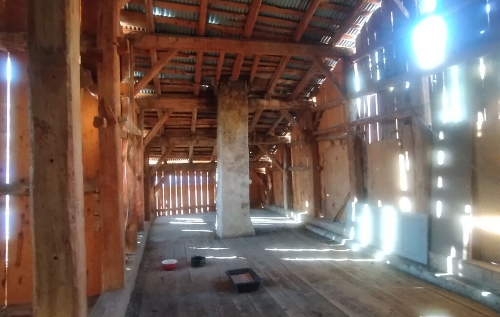 Un escalier extérieur donne accès à la grange sur 2 niveaux avec une surface de 160 m 2 environ au sol