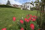 En Rez de chaussée, entrée, salon avec cheminée, bibliothèque, bureau, vaste séjour avec vue panoramique sur la vallée, grande cuisine, salle d’eau neuve. (Vie de plain pied possible) À l’étage, palier, 4 chambres, 2 salles de bain, une dernière chambre sous combles au deuxième.