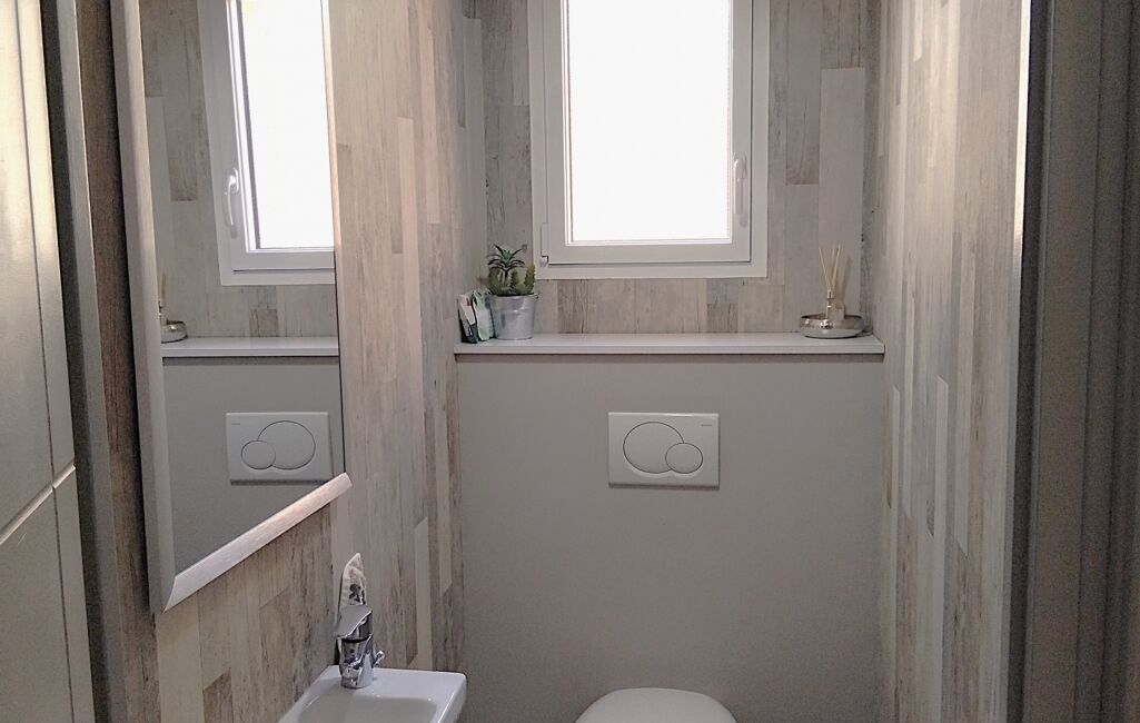 La maison dispose de 3 chambres confortables, dont une suite parentale avec dressing et salle de bain (baignoire + douche italienne). Une deuxième salle d'eau ainsi que deux toilettes ajoutent des commodités supplémentaires à ce bien. A noter que les chambres et les salles d'eau disposent de grands placards offrant ainsi de beaux volumes de rangement.