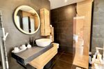 Dès l’entrée, la lumière s’impose comme une évidence. La pièce de vie, largement ouverte vers l’extérieur, offre une atmosphère chaleureuse et apaisante. Grâce à son exposition Est-Ouest, elle profite d’un ensoleillement naturel tout au long de la journée. Les volumes sont généreux, les circulations fluides, et chaque perspective a été pensée pour créer une véritable harmonie entre intérieur et extérieur. La cuisine équipée s’intègre parfaitement dans cet espace central, à la fois moderne, conviviale et fonctionnelle, idéale pour recevoir et partager.