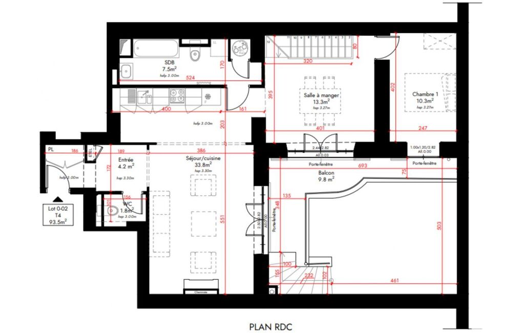 - Surface habitable : 94 m²