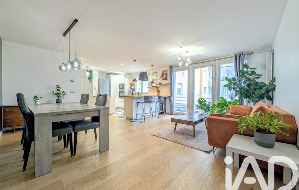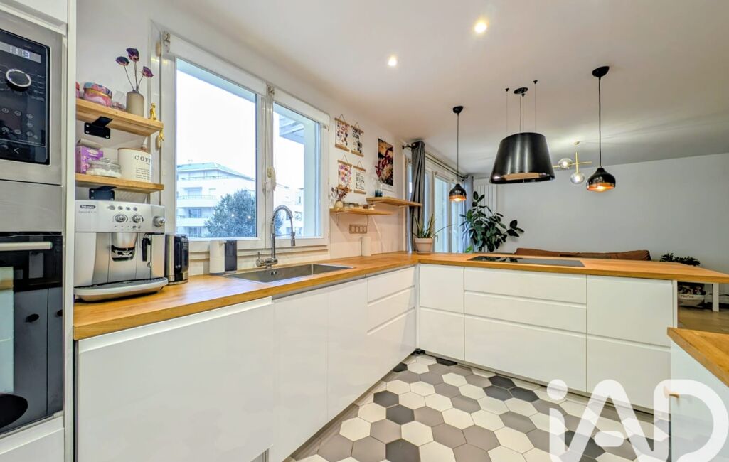 Profitez d'une pièce de vie de 40m² donnant sur une terrasse de 12m² exposée sud-ouest, comprenant un espace d'entrée, une cuisine ouverte équipée avec ilot, un espace salle à manger et un espace salon.