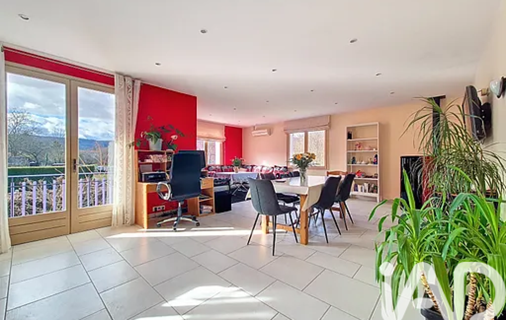 À l’étage, un escalier mène à une superbe pièce de vie lumineuse de plus de 40 m², composée d’une cuisine récente entièrement meublée et équipée, ouverte sur un espace salle à manger et salon chaleureux. Un poêle à granulés apporte une atmosphère conviviale et complète parfaitement le confort thermique. La pièce s’ouvre sur une terrasse/ balcon exposée ouest, parfaite pour les repas en extérieur et les fins de journée ensoleillées.