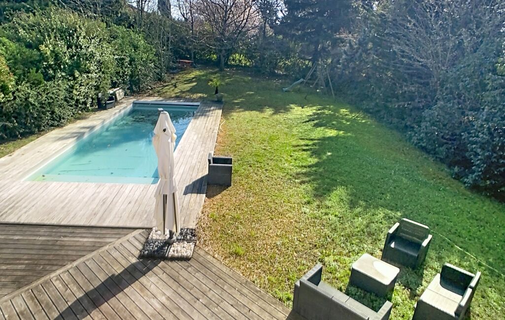Implantée sur un magnifique terrain paysager de plus de 1 700 m², sans vis-à-vis, la maison profite d’un jardin arboré et paysagé tout en restant proche des écoles, commerces, transports et de la rocade.