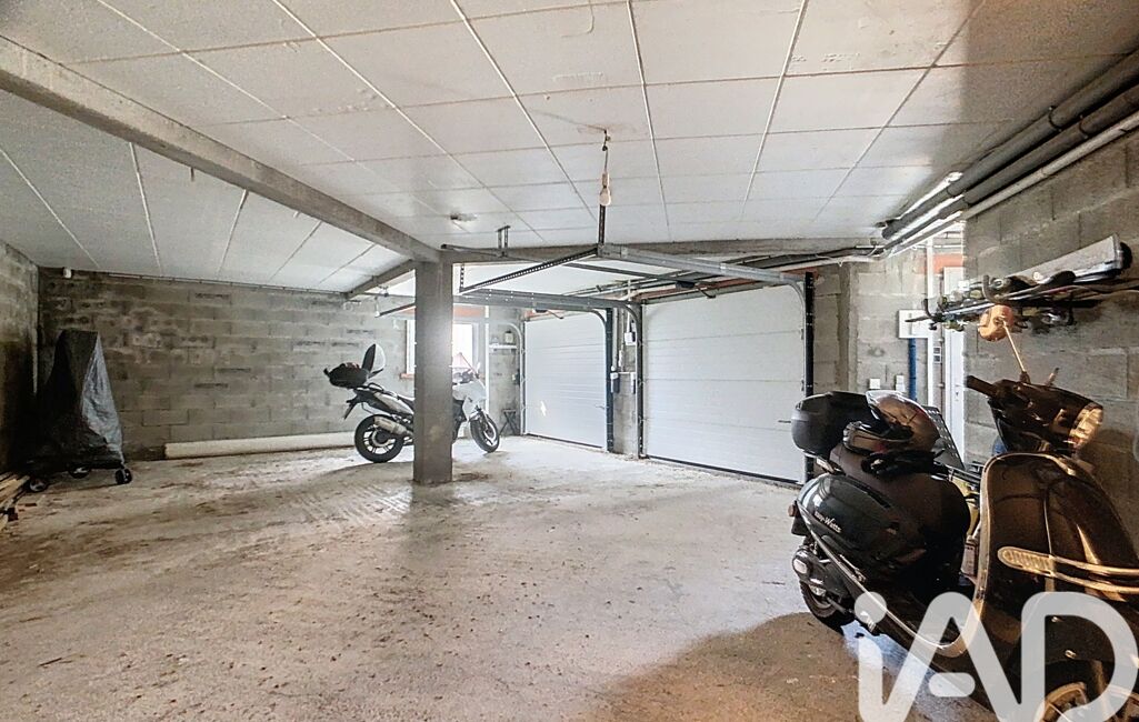 Un grand garage avec portes motorisées (plusieurs véhicules).