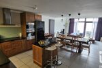 Au rez de chaussée, vous serez immédiatement séduit par une vaste pièce de vie d'environ 50m2, baignée de lumière, comprenant un salon séjour et une cuisine moderne entièrement meublée et équipée avec son ilot central. A l'arrière de la cuisine vous retrouverez un cellier de 8m2.
