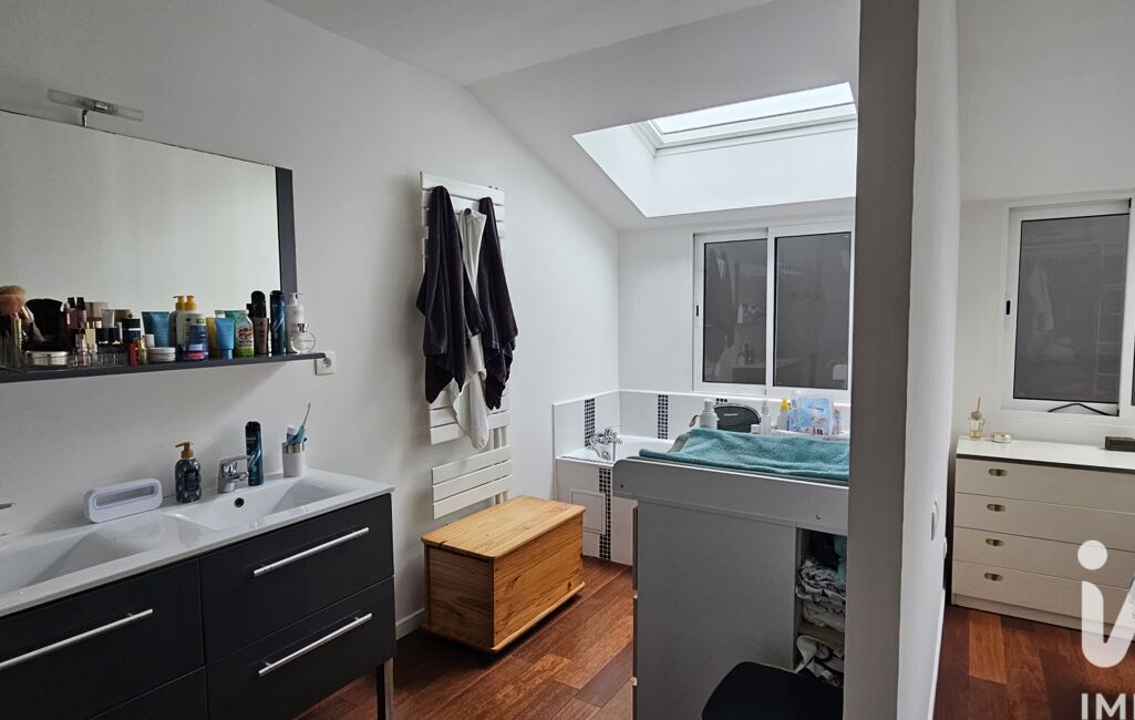 A l'étage le pallier dessert un second toilette, 1 chambres de 9m2 avec possibilité d'aménagement supplémentaire ( notamment la création d'un espace douche ) et une suite parentale de 12.5 m2 avec sa salle de bain attenante de 8m2 comprenant douche et baignoire.