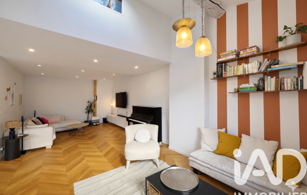 • Pièce de vie plein sud en double hauteur offrant un volume exceptionnel et une luminosité naturelle.