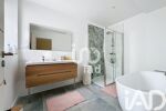 - Une élégante salle de bain avec baignoire.