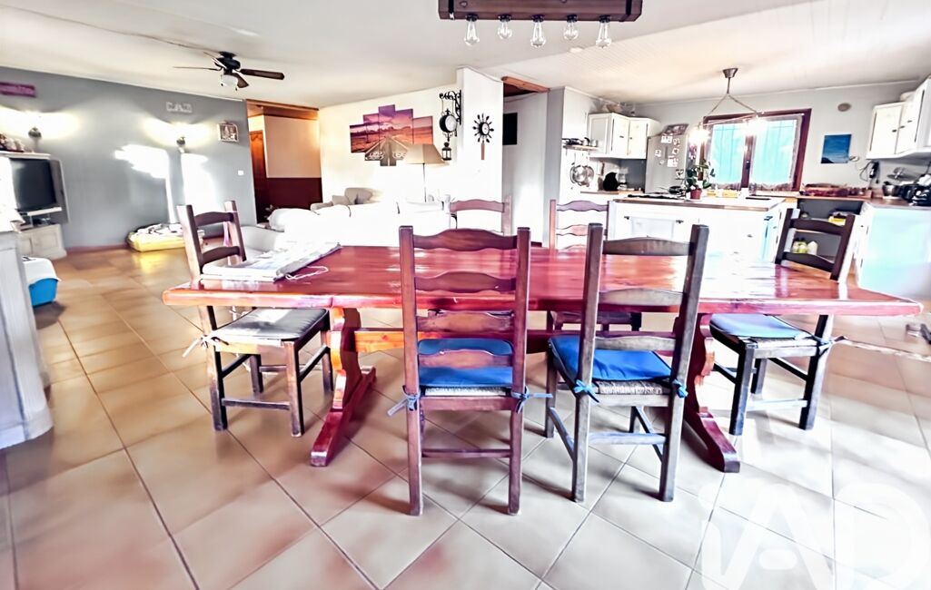 Cuisine, salle à manger et salon donnant accès à une grande terrasse.