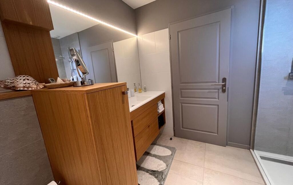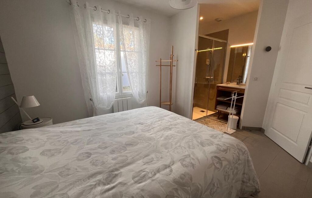 L'espace nuit propose trois chambres, dont une suite avec salle d'eau privative et placards, ainsi qu'une seconde salle d'eau avec WC.