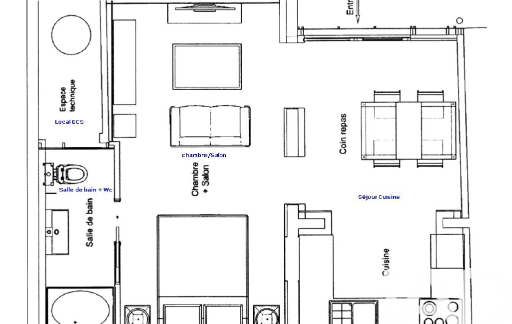 L'aménagement intérieur de ce bien a été optimisé pour offrir un espace de vie agréable et pratique. Il comprend une salle d'eau, un WC séparé, une cuisine aménagée équipée avec petit coin repas, ainsi qu'un espace salon, répondant à tous vos besoins quotidiens.