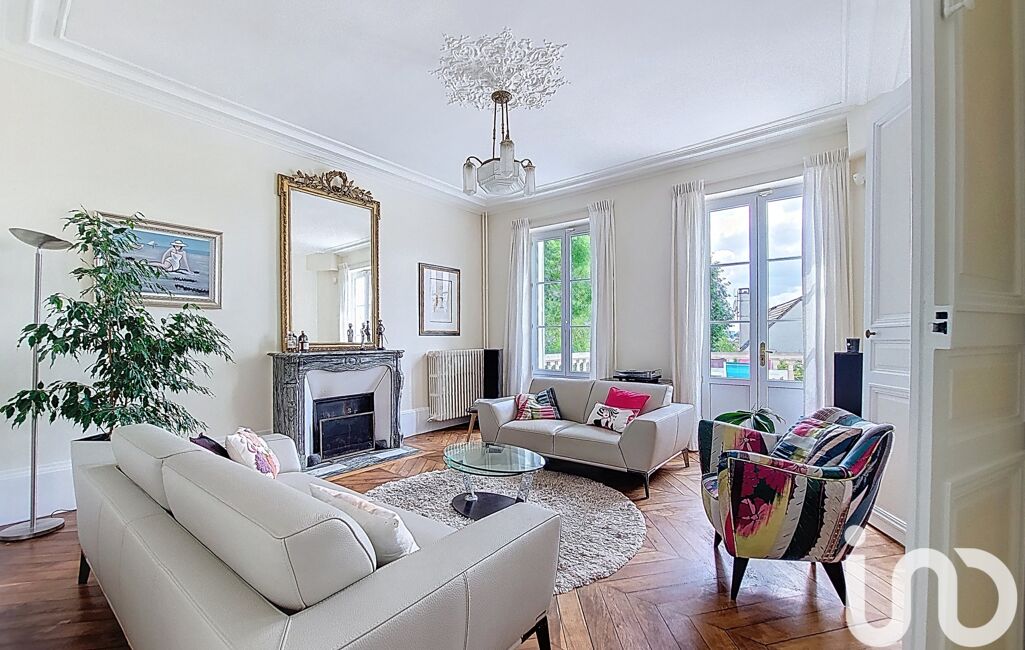 iad France - Xavier Noury vous propose: A 50 minutes de Paris, au sein du vieux bourg de Saint-Germain-Lès-Corbeil, cette magnifique maison de maître de la fin du 19ème siècle allie charme et caractère. Elle est implantée sur un terrain de 780 m², clos de murs en pierres, joliment arboré et offrant une grande cour à l’avant permettant de garer plusieurs véhicules.