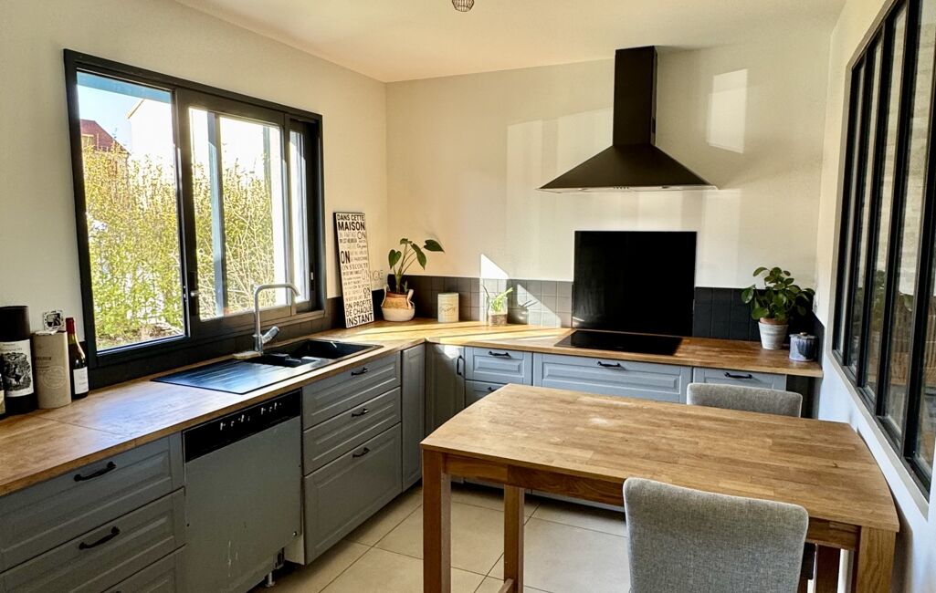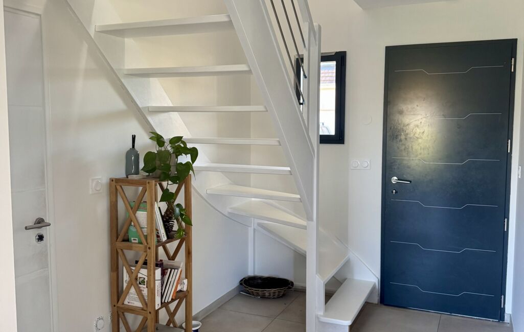 Construite en 2014, elle est composée au rdc d'une belle entrée desservant, une cuisine équipée et aménagée, un locale technique avec wc, un garage et une pièce de vie d'environ 30 m² donnant accès sur une terrasse et le jardin.